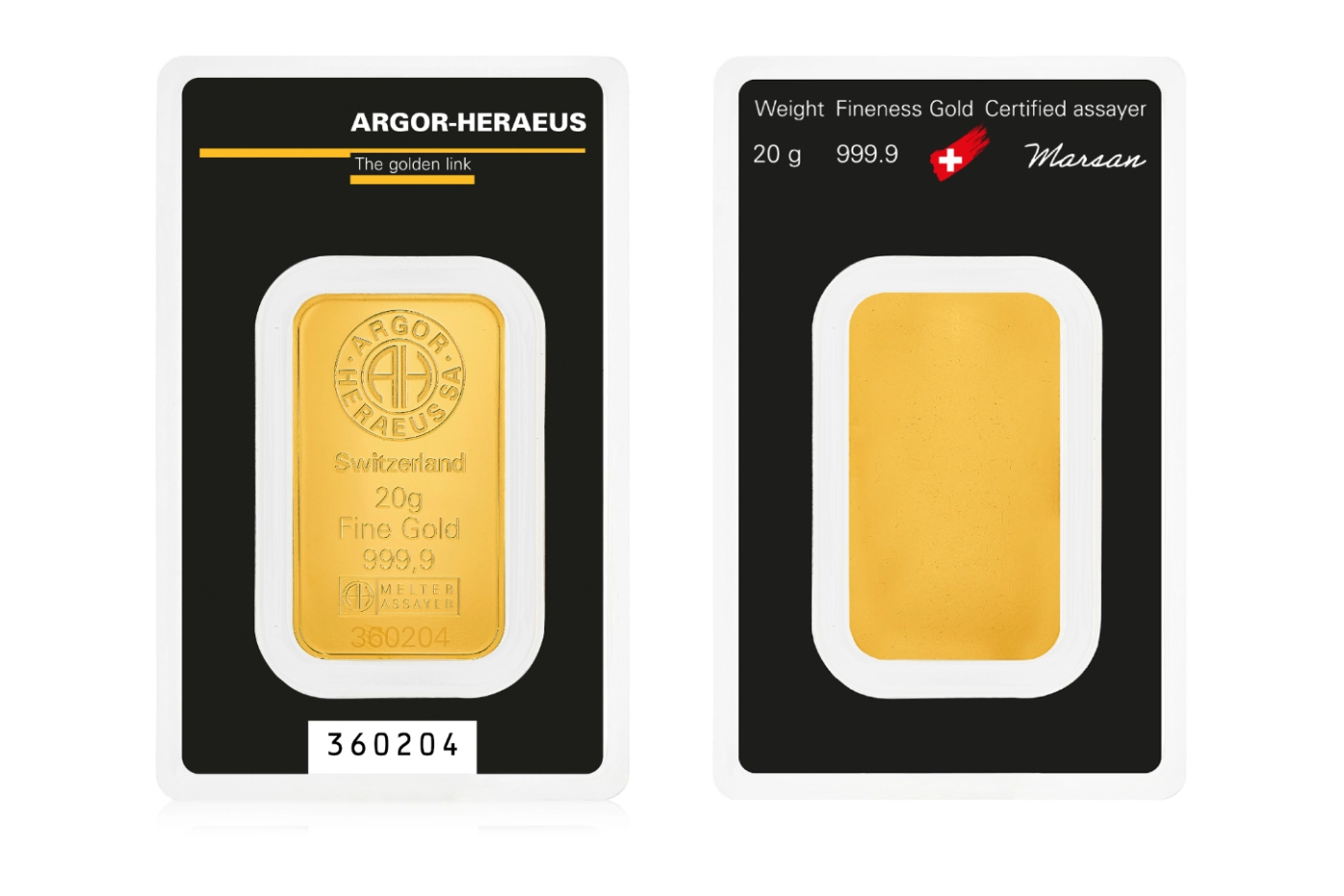 Золотой слиток Argor-Heraeus весом 20 грамм