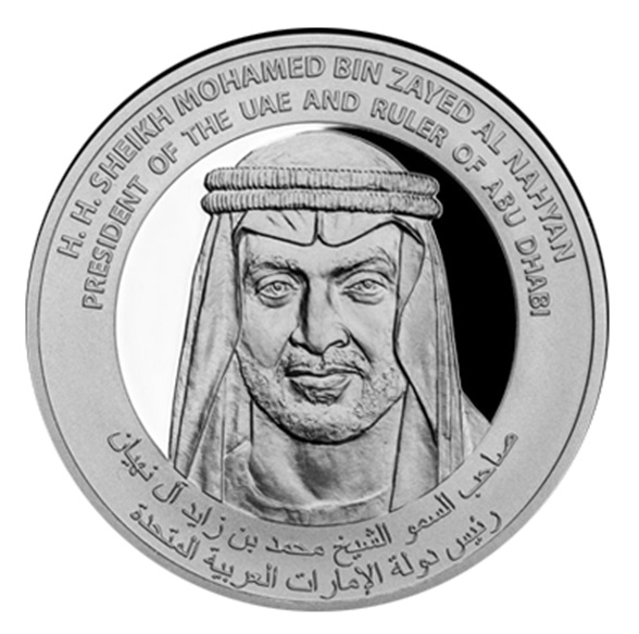 Представляем первую серию серебряных монет ОАЭ в слитках, отчеканенных по заказу DMCC в ознаменование лидерства и достижений страны. На аверсе этой монеты, выпущенной впервые, изображен выдающийся портрет Его Высочества шейха Мохаммеда бен Заида Аль Нахайяна, президента ОАЭ и правителя Абу-Даби.